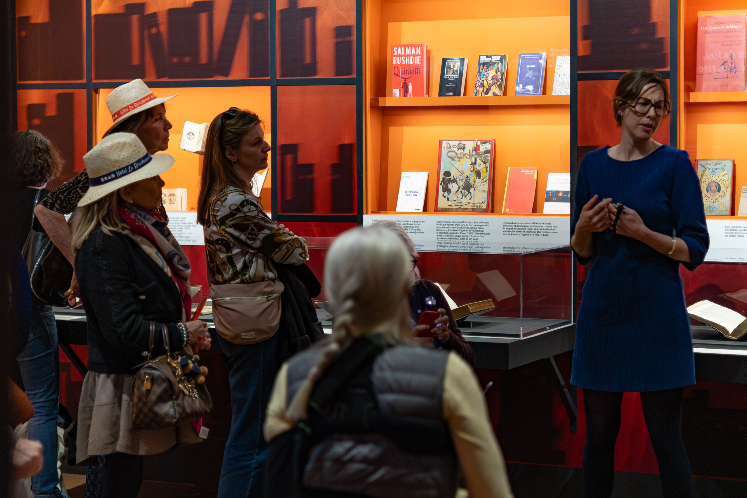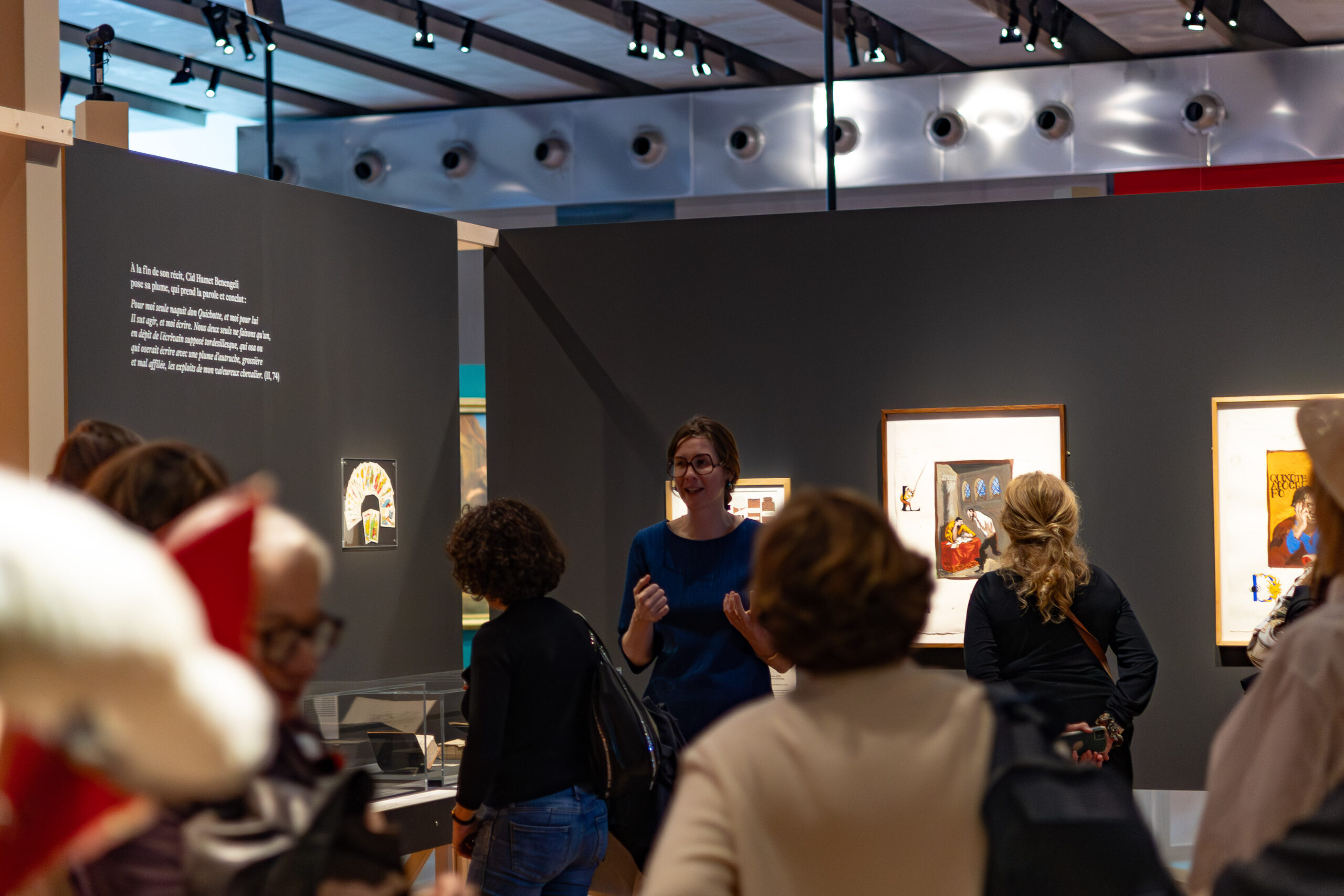 Dans l’après-midi, nous nous sommes rendus au Mucem pour découvrir l’exposition Don Quichotte. Histoire de fou, histoire d’en rire, riche de plus de deux cents œuvres entre estampes, livres anciens, peintures, extraits de films et installations contemporaines. Les commissaires, Aude Fanlo, responsable du département Recherche et enseignement, et Hélia Paukner, conservatrice du patrimoine et responsable du pôle Art contemporain, nous ont fait l’honneur de nous accompagner dans cette visite. Grâce à leurs éclairages, nous avons été guidés dans l’univers de ce personnage, avant tout lecteur passionné, qui a su entraîner d’autres lecteurs dans ses aventures à la fois comiques et profondément symboliques.